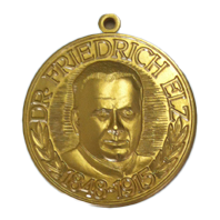 Die Plakette zeigt den Verbandsgründer Dr. Friedrich Elz. Geehrte erhalten Plakette, Urkunde, eine Kurzbiografie und eine Anstecknadel.